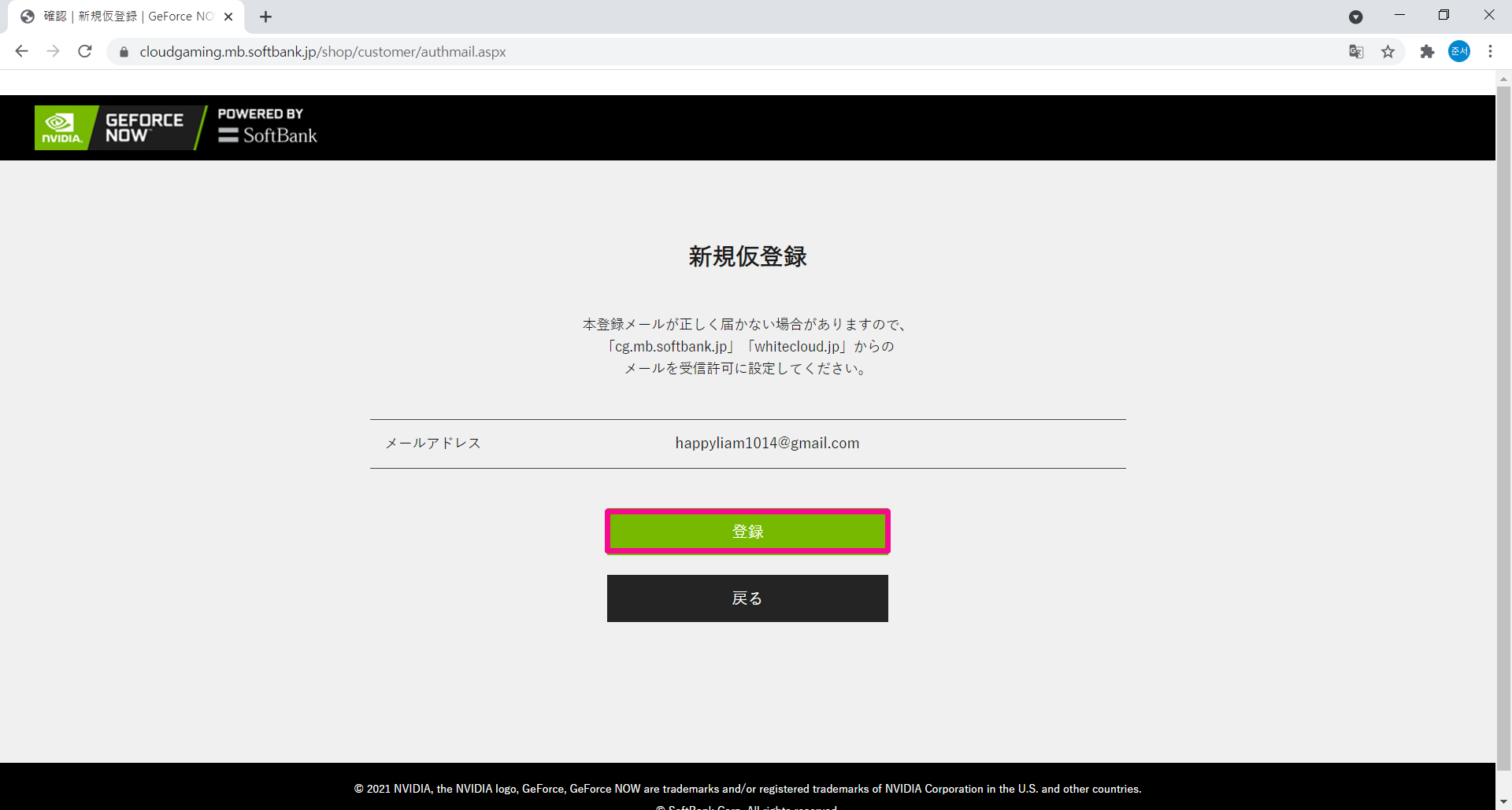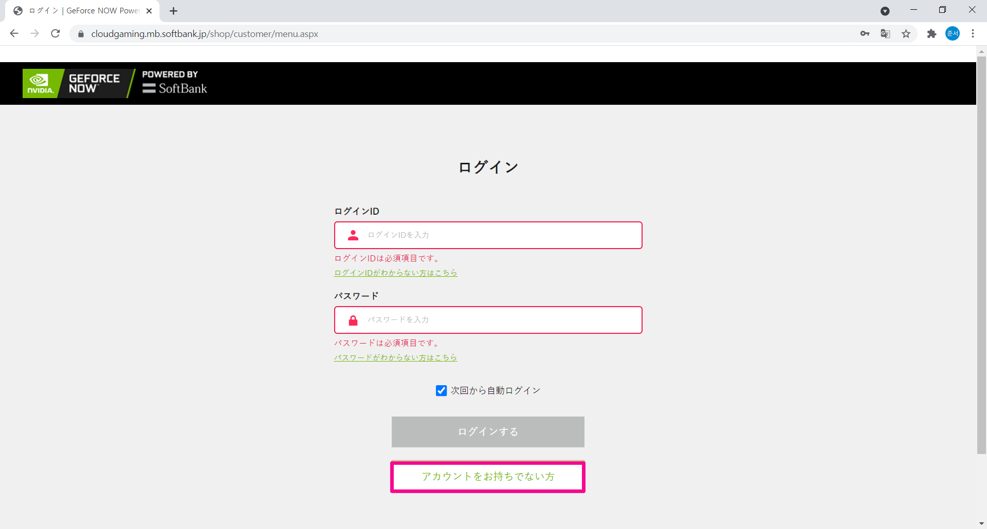 https://cloudgaming.mb.softbank.jp/에 접속해서 초록색 상자를 클릭해줍니다.