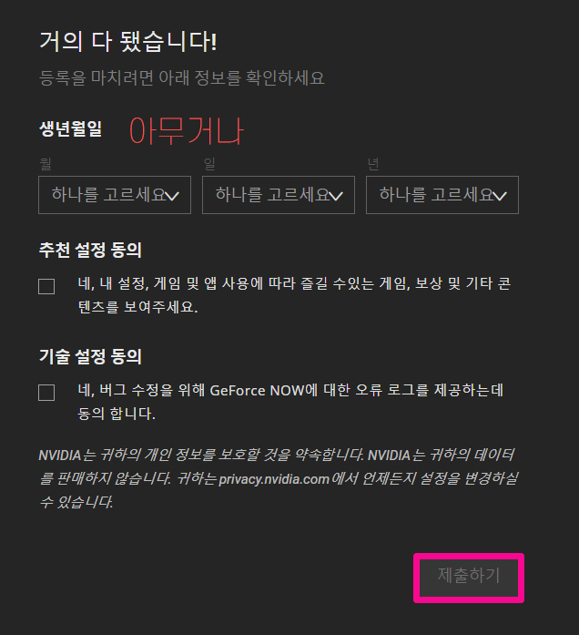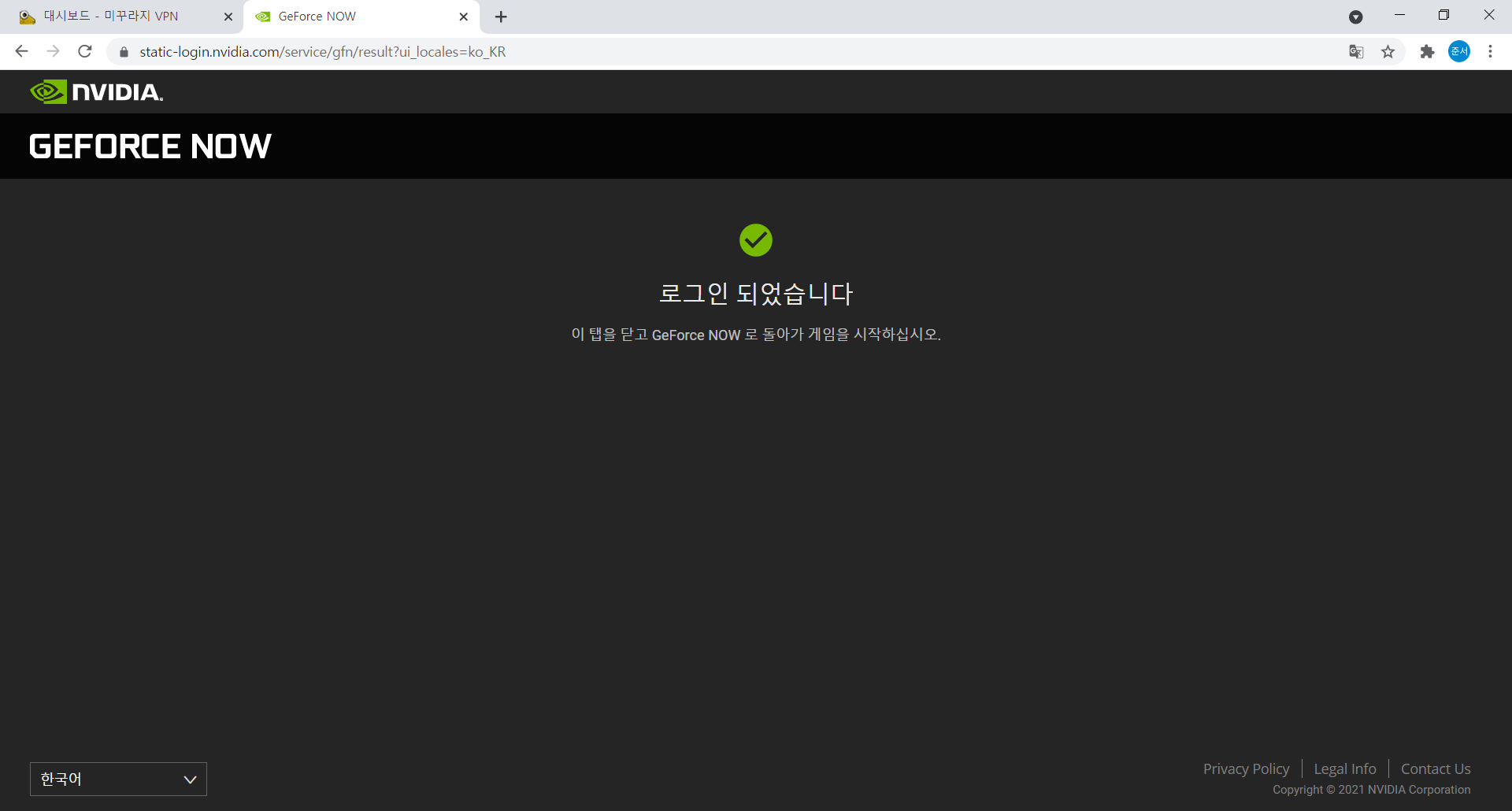 회원가입 완료! 이제는 바로 지포스 나우 로그인해보러 갑시다.