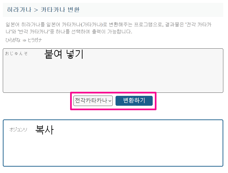 http://www.hipenpal.com/tool/japanese_hiragana_to_katakana_converter_in_korean.php