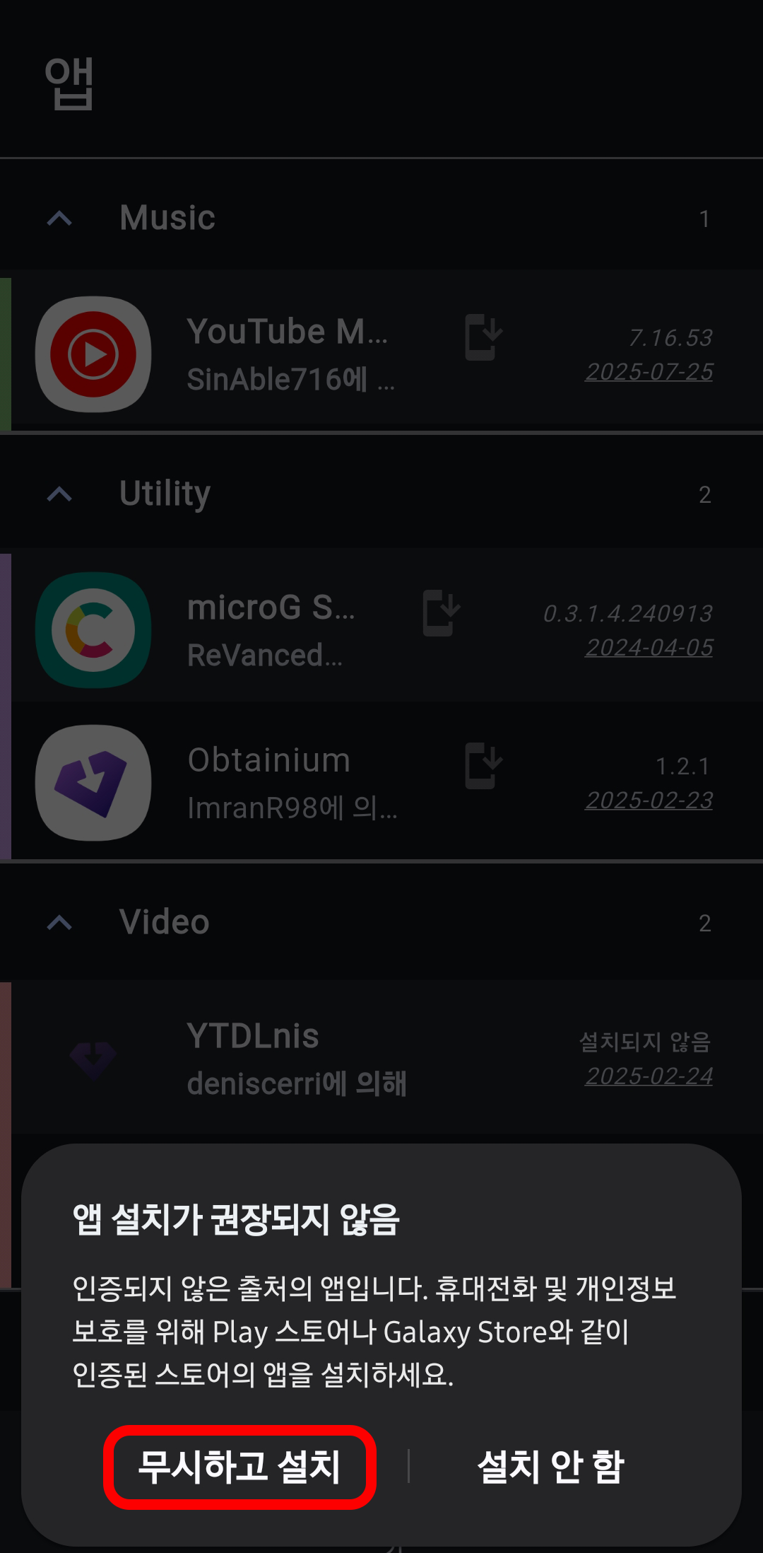 다운로드 과정에서 "알 수 없는 다운로드, APK 출처 경고"라면 권한 허용을 해주시면 됩니다.